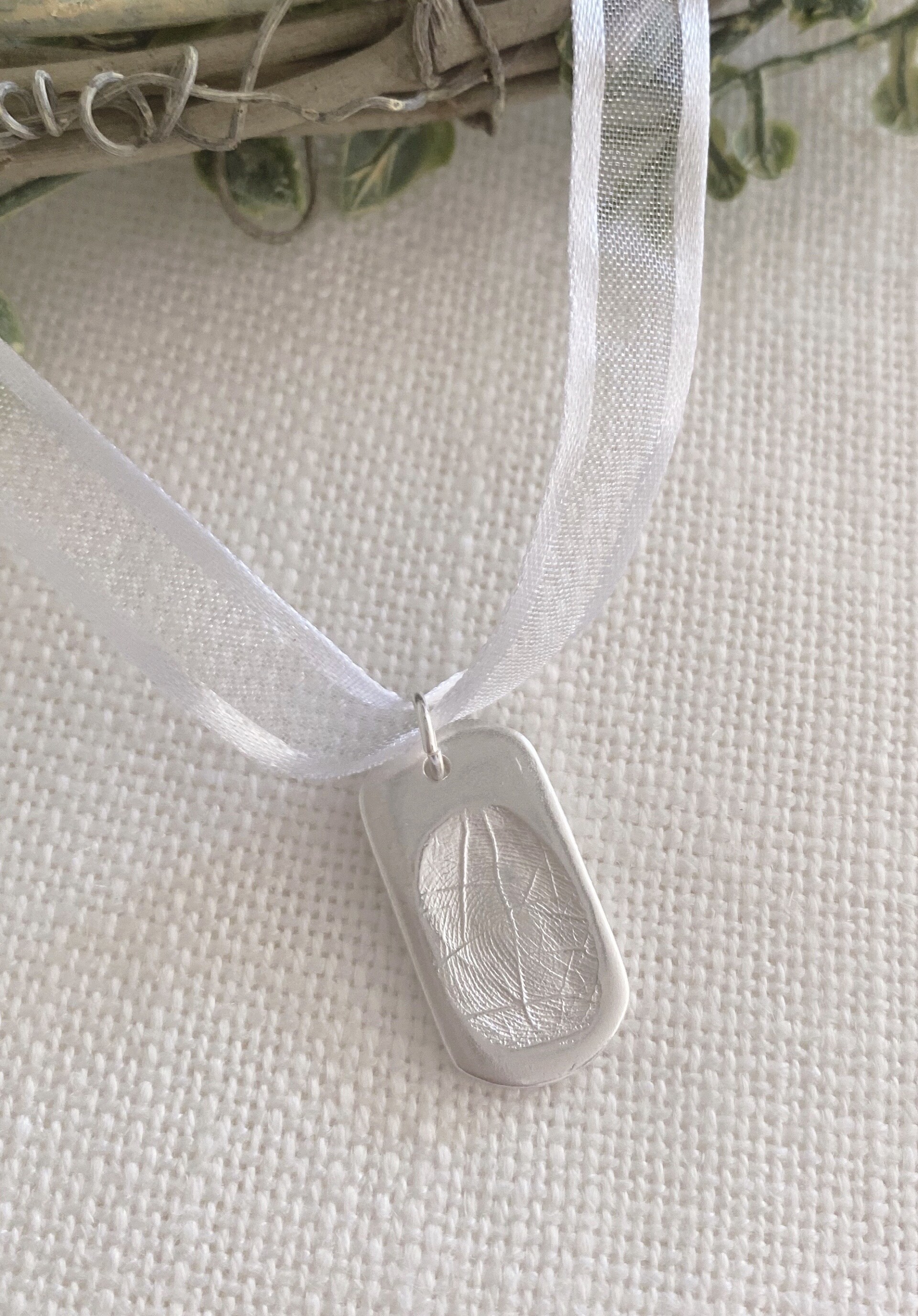 Dog Tag shaped Fingerprint Pendant capturing you or your loved ones fingerprint in pure silver. Add this to an existing chain or select a chain from our range on our website.